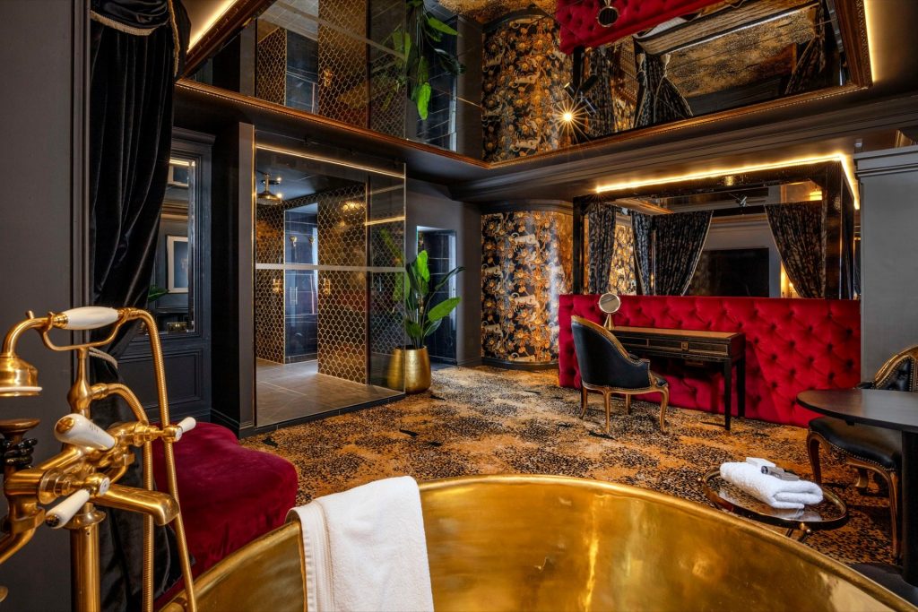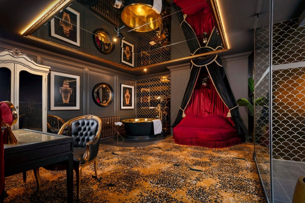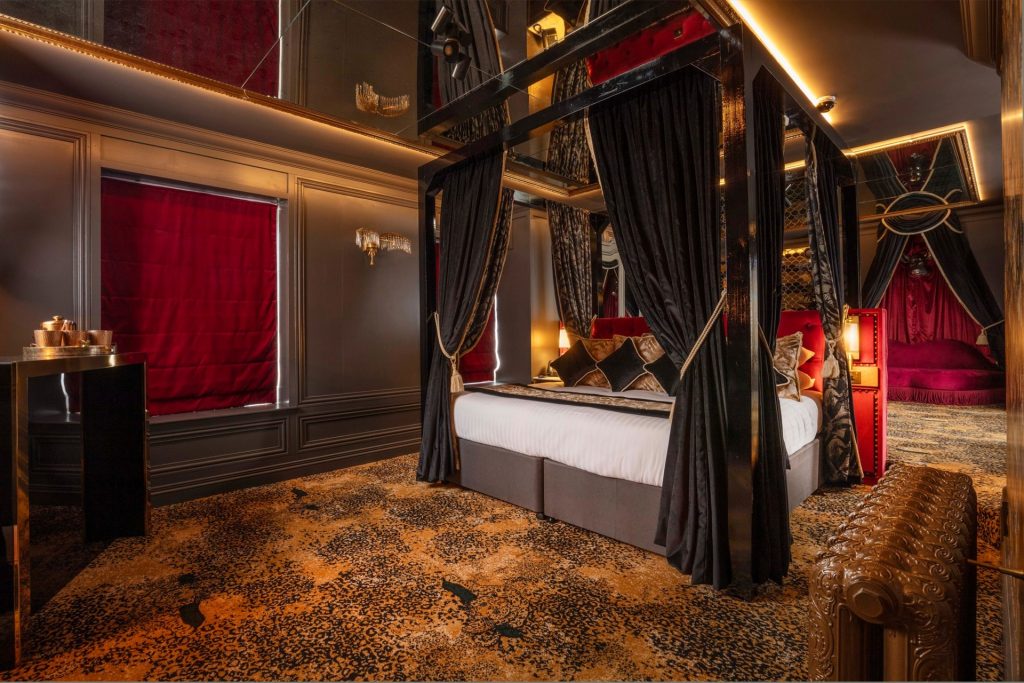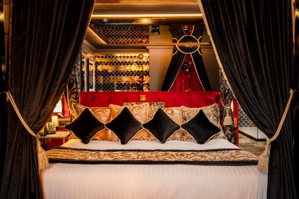 A suite to make your wildest dreams come true. Featuring a red velvet 7-ft Hypnos bed you can literally sink into. A specially stocked mini bar complete with free standing bar, ice bucket & cocktail shaker.